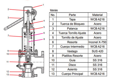 VÁLVULA DE SEGURIDAD , CUERPO ACERO CARBONO WCB 216, FLANGE , SET UP: 10 BAR, FLANGE 300 RF,